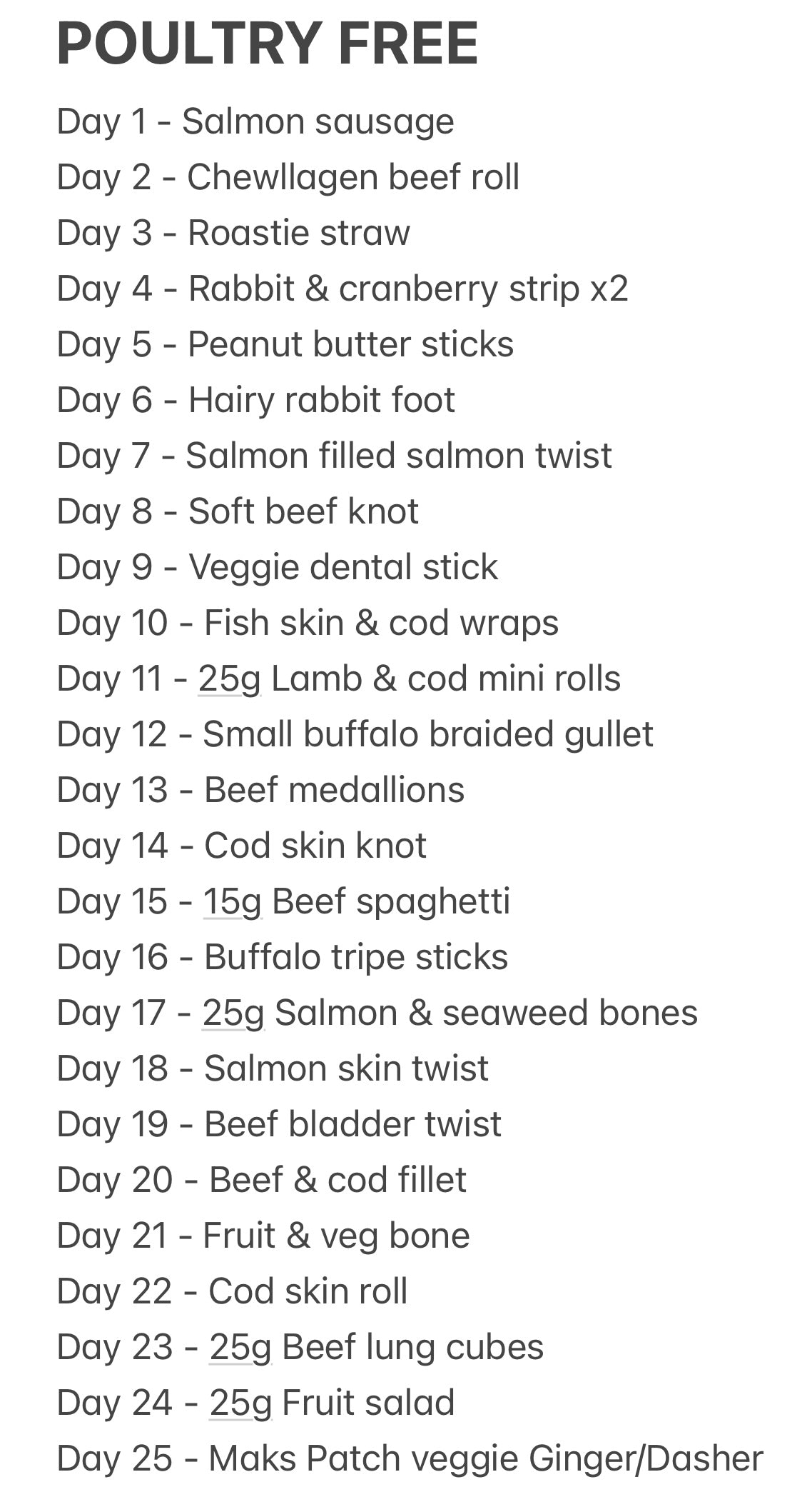 Mixed protein or Poultry free available