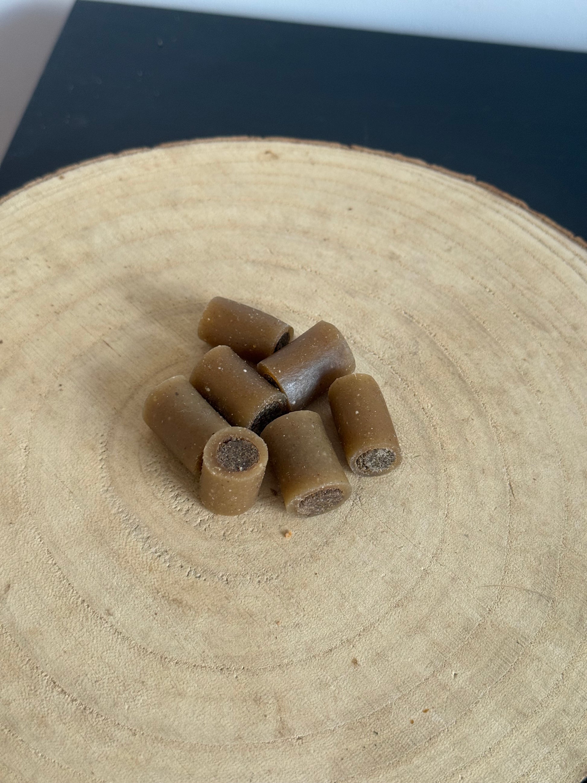 80% Green Lipped Mussels, 10% King Prawns, Vegetable by-products, 5% Sweet potato, 5% minerals – including water, oil & natural occurring minerals.